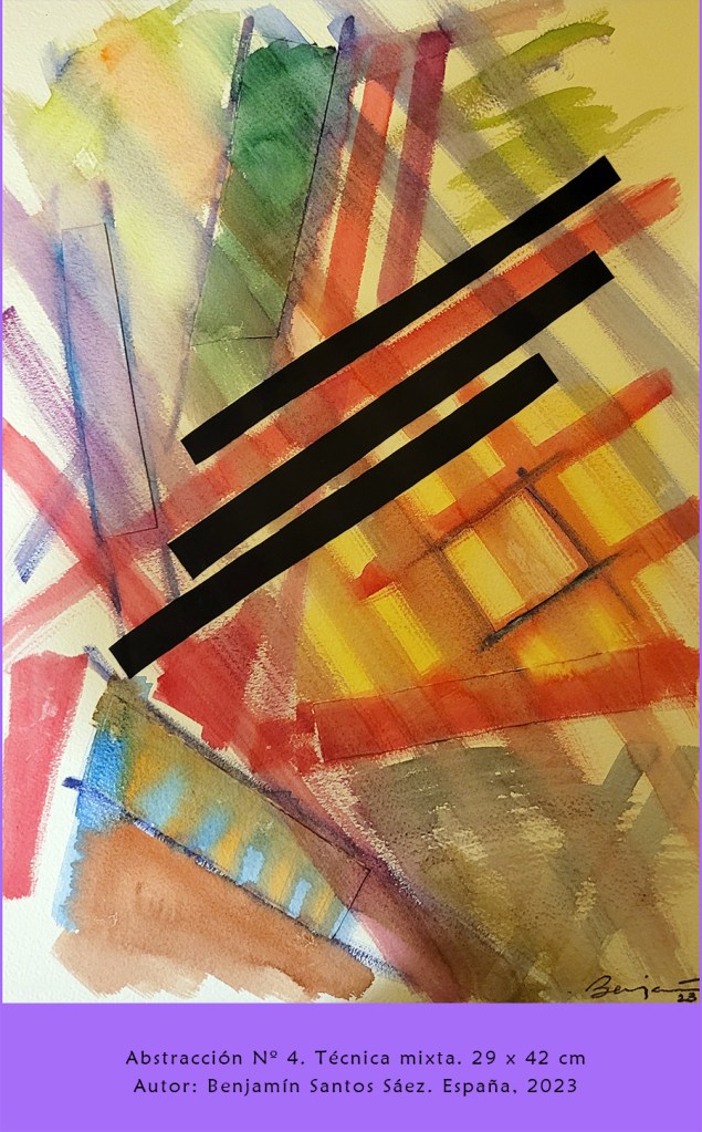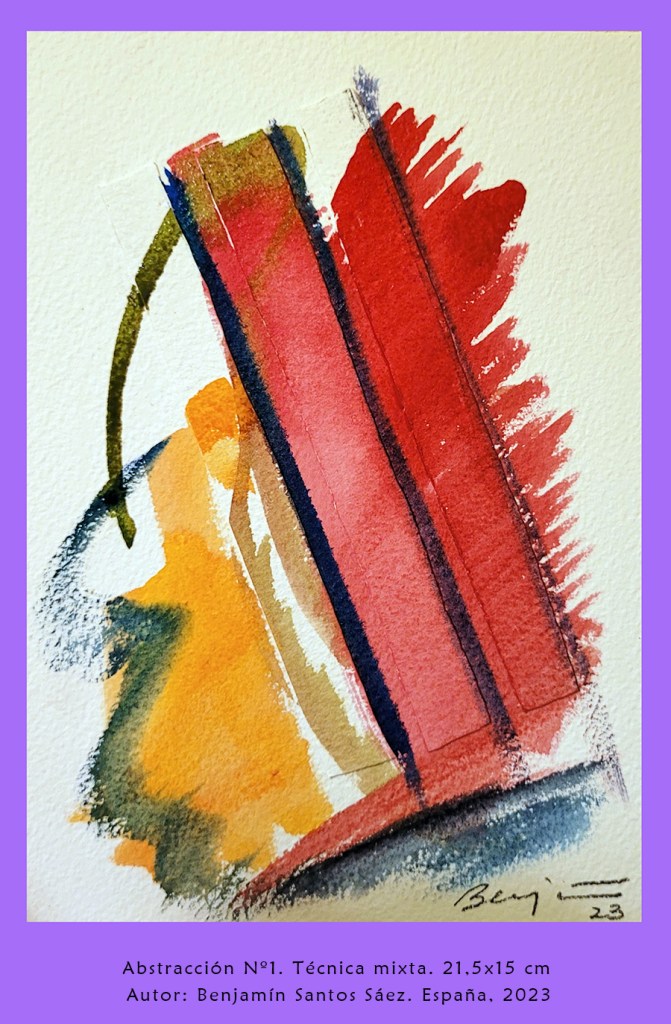 El aprendiz de artista, Benjamín Santos Sáez (España, 1980) nos deleita en esta ocasión con 10 Abstracciones creadas con técnica mixta en su estudio, haciendo alusión al número 10, número sagrado pitagórico.